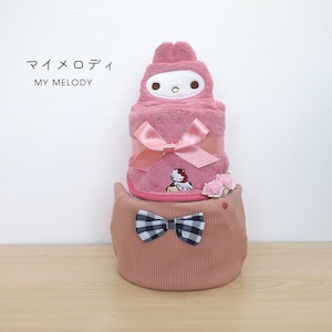 おむつケーキ キャラクター 2段 紙おむつ マイクロループタオル ベビー服 出産祝い ポムポムプリン シナモロール マイメロディ プー エイリアン ミニオン ck-crt2