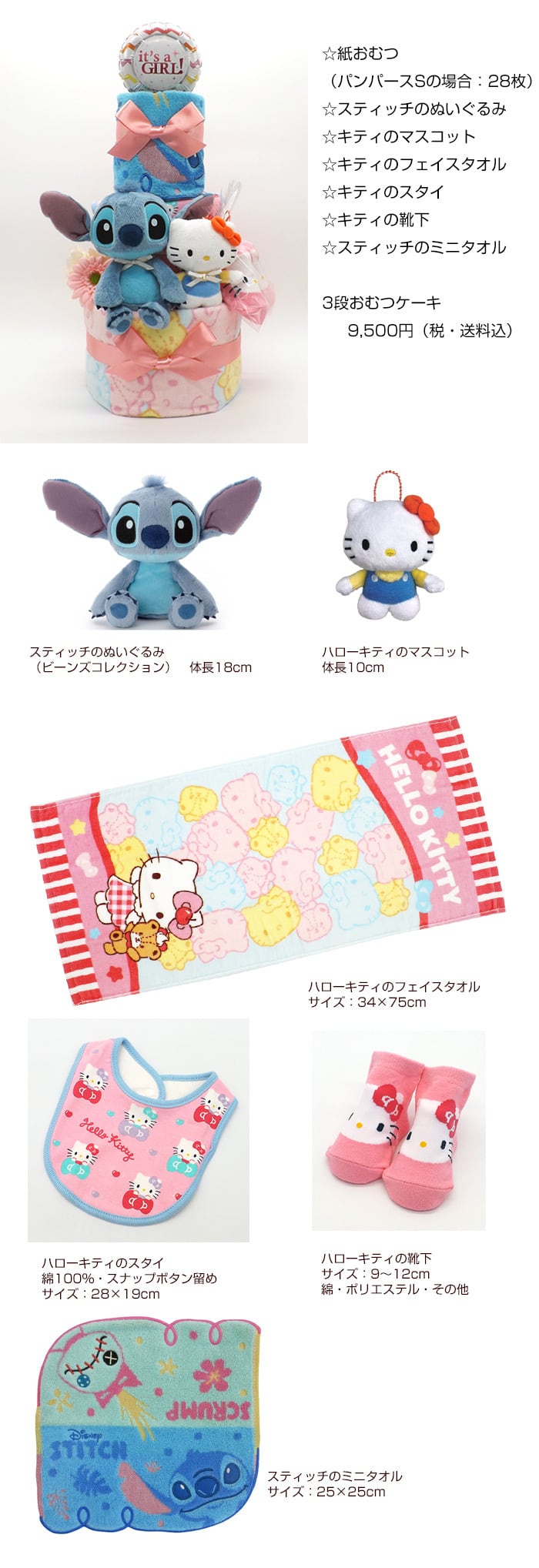 オーダーメイドオムツケーキ スティッチ&ハローキティ