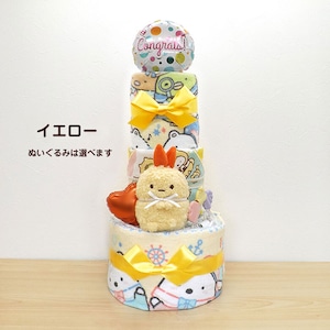 すみっコぐらしのぬいぐるみ&タオルセット付き出産祝いおむつケーキ