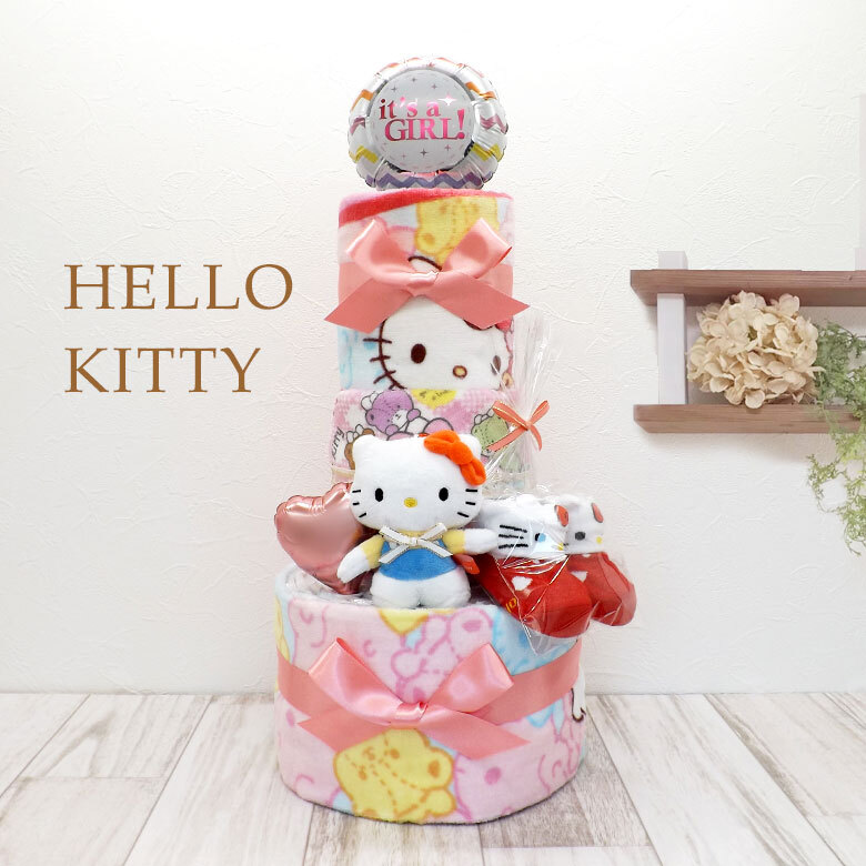 ◎キティラーママの出産祝いに!かわいいタオル付きキティちゃんの3段オムツケーキ◎