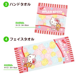 キティちゃんのマスコットと大きさの違うタオル3枚付き。