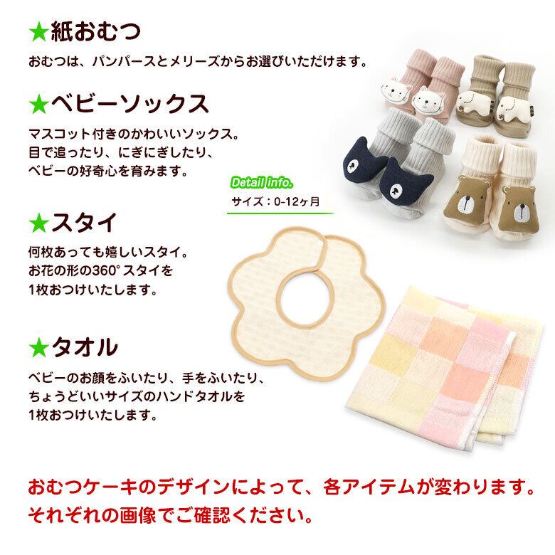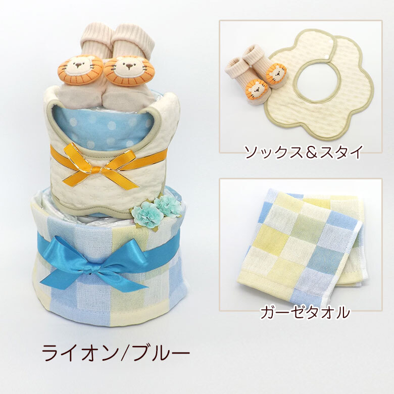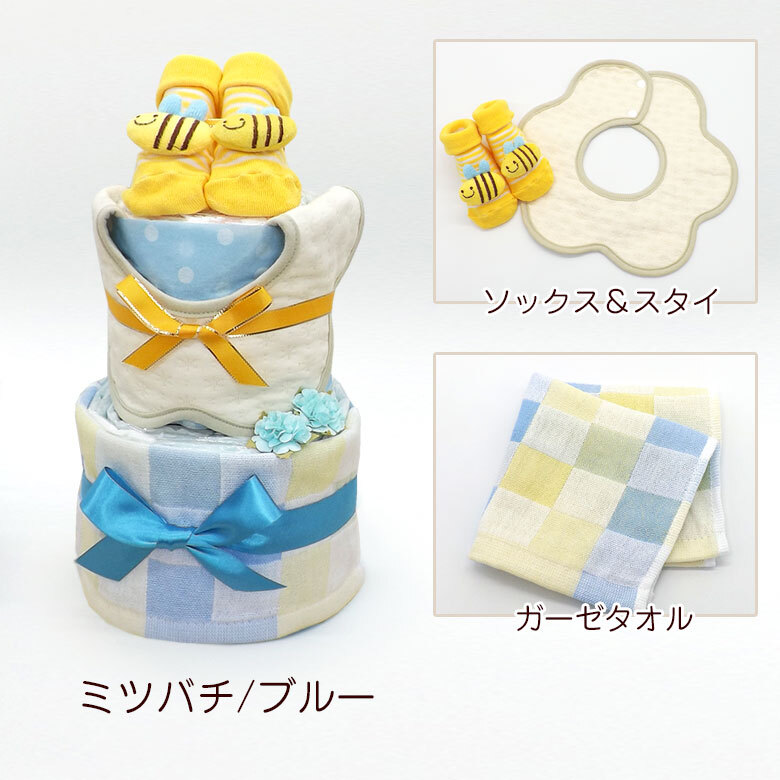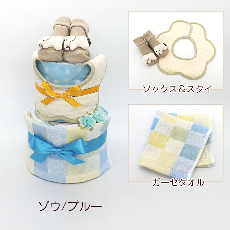 おむつケーキ 男の子 女の子 男女兼用 2段 ベビーソックス スタイ タオル 出産祝い ck-sbt2