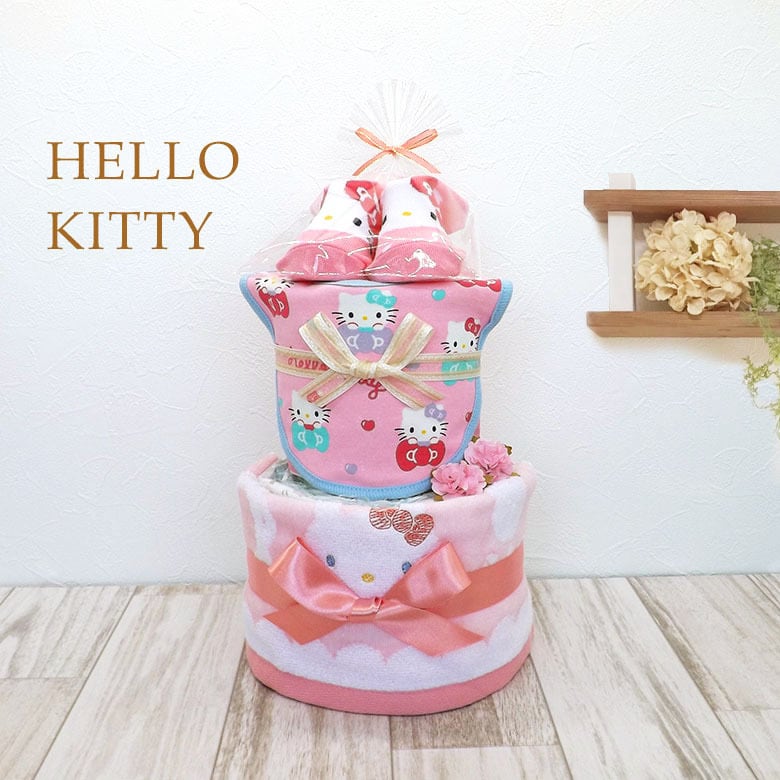 ハローキティ おむつケーキ ベビーソックス スタイ ハンドタオル 2段 kity-sbt2